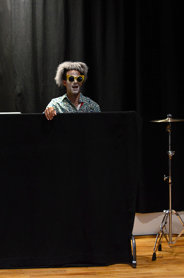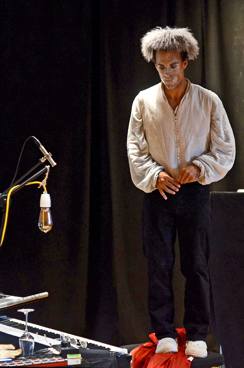 C’est une première étape de travail à laquelle nous a convié Dimitri Lemaire. « On dirait que…! Et puis, on dirait que… » pourrait donner le ton de son approche : imaginez un grand enfant, la tête et le corps empêtrés de personnages hauts en couleurs, ouvrant les boîtes de son imaginaire. Ces instants sont alternés avec des « pauses musicales » comme il les appelle. En voici quelques photos :