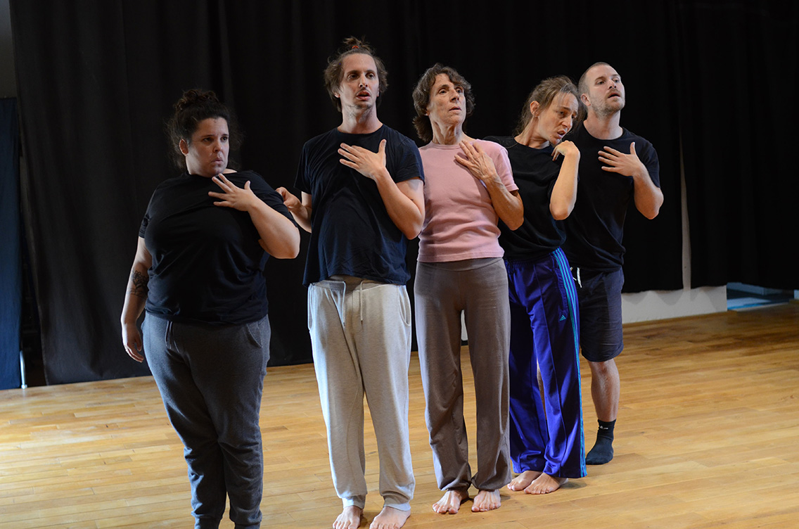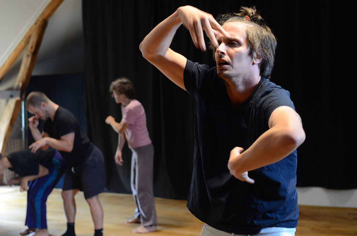 Dans Abwarten (littéralement l’attente de rien), les interprètes laissent surgir l’émulsion d’une communauté dans l’attente d’un évènement, d’un instant. Ou bien de rien. »