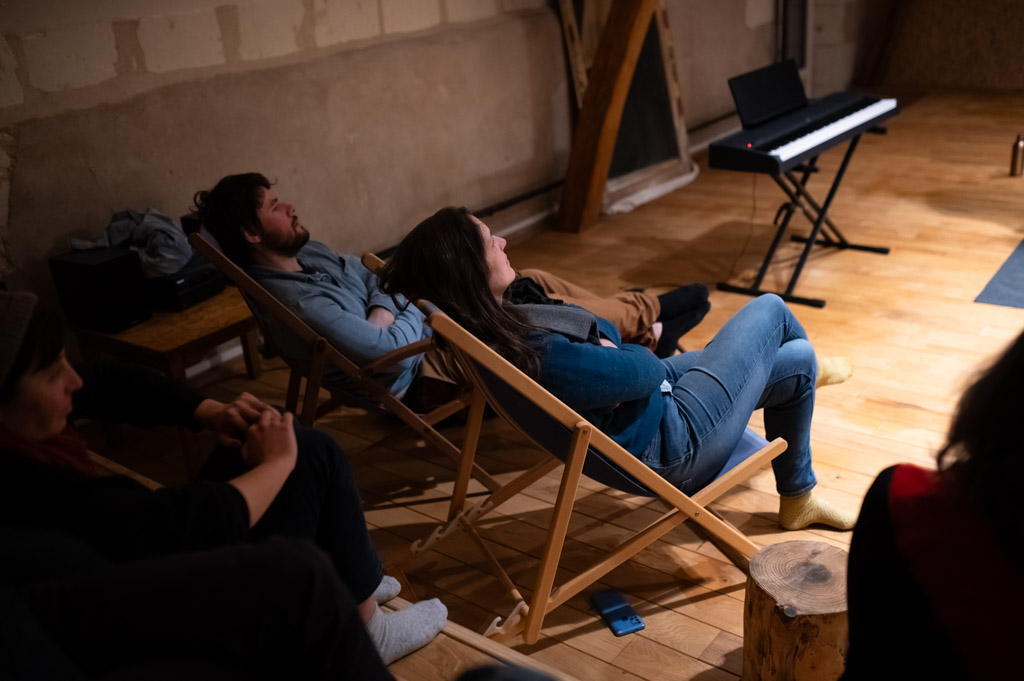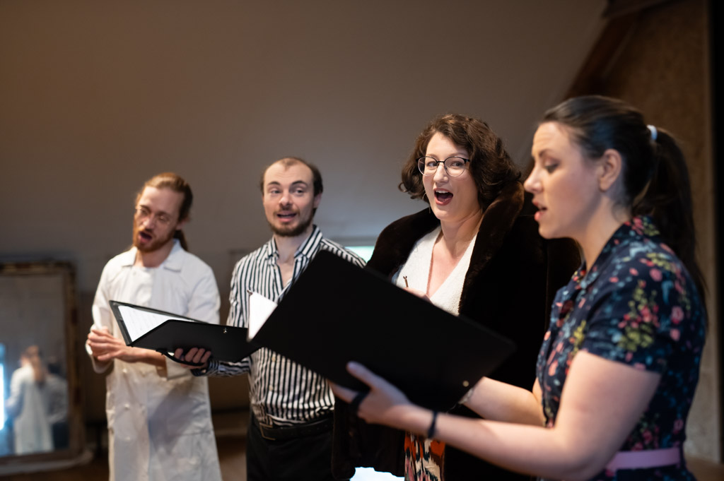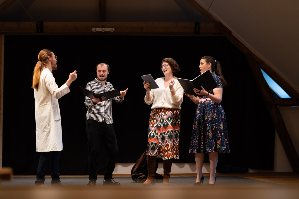 Une fois n’est pas coutume, la sortie de résidence s’est déroulée un jeudi, le 7 mars à 19h. Et c’est avec beaucoup de plaisir que le public est venu assister à la présentation du Quatuor vocal Accolade. La formation renouvelée de moitié a offert aux adhérents de LouHenrie un avant-goût de son prochain spectacle : La Pince à Linge.