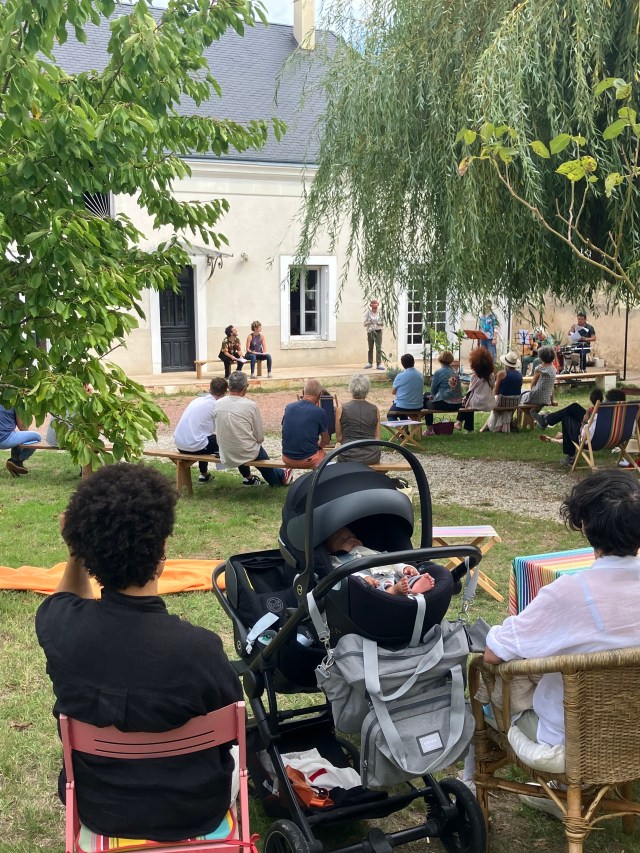 Les spectateurs venus avec leur pique-nique étaient installés dans le jardin de Louhenrie profitant d’un cadre verdoyant, détendu et festif.